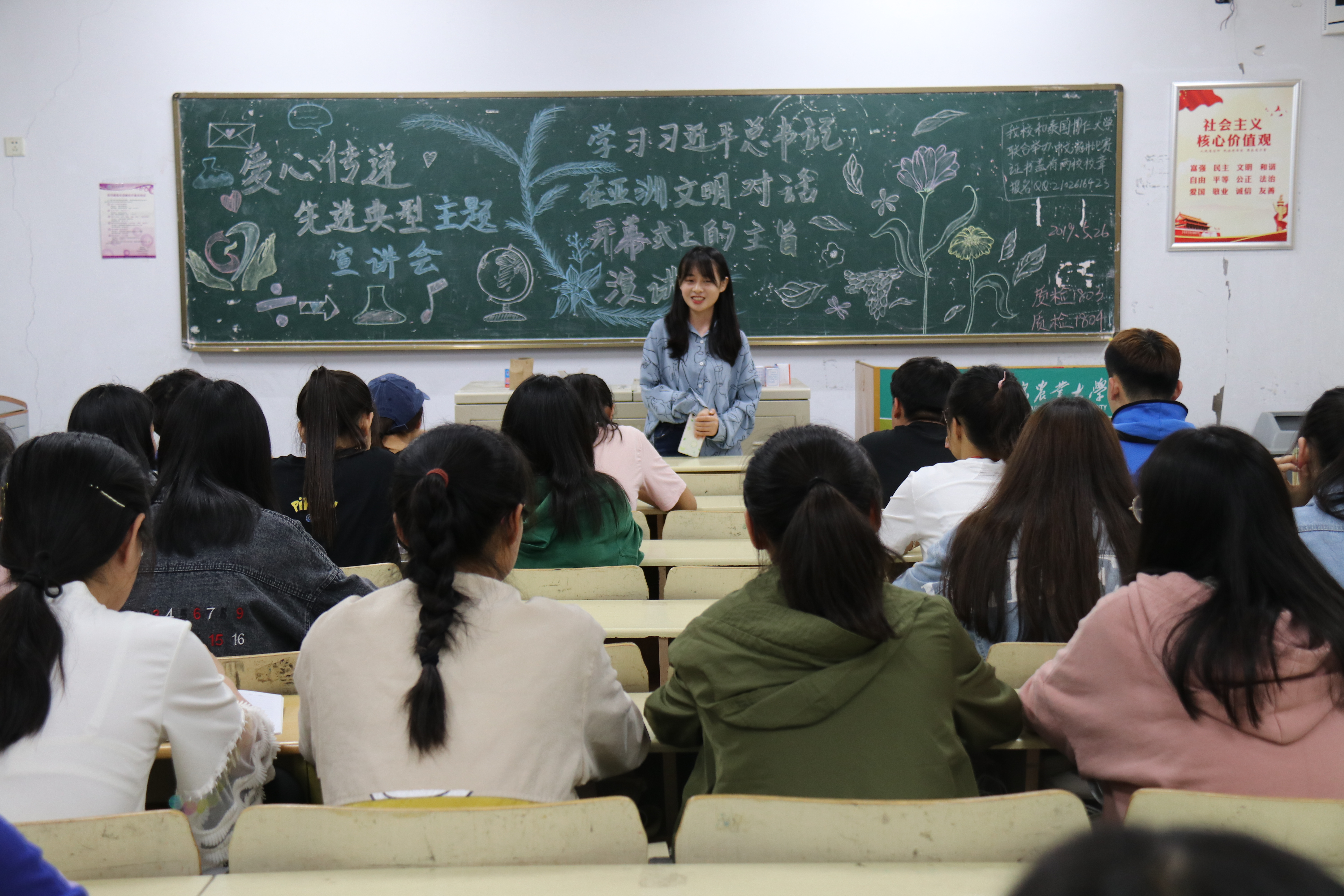 5月26日,tyc234cc 太阳成集团在教学区开展“爱心传递,先进典型”主题宣讲与“学习习近平总书记在亚洲文明对话大会开幕式上的主旨演讲”主题政治学习。学院2017、2018级同学积极参加。
