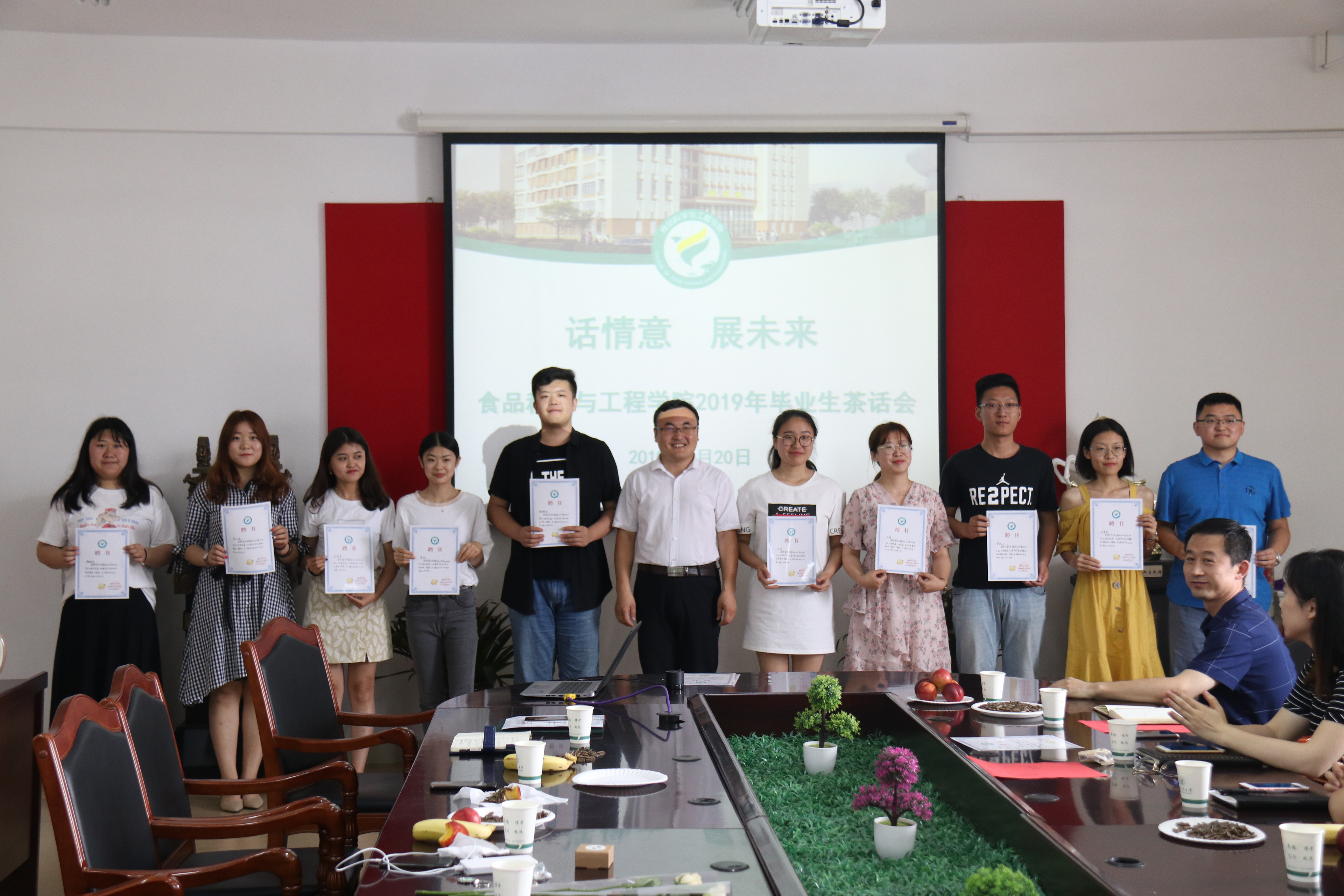 6月20日,tyc234cc 太阳成集团于食品楼举办“话情意、展未来”毕业生茶话会。学院党委副书记宋伟,团委书记李永青,辅导员赵莹、孙晓东、江巧宁以及学院第25届、第26届学生会主要学生干部参会。