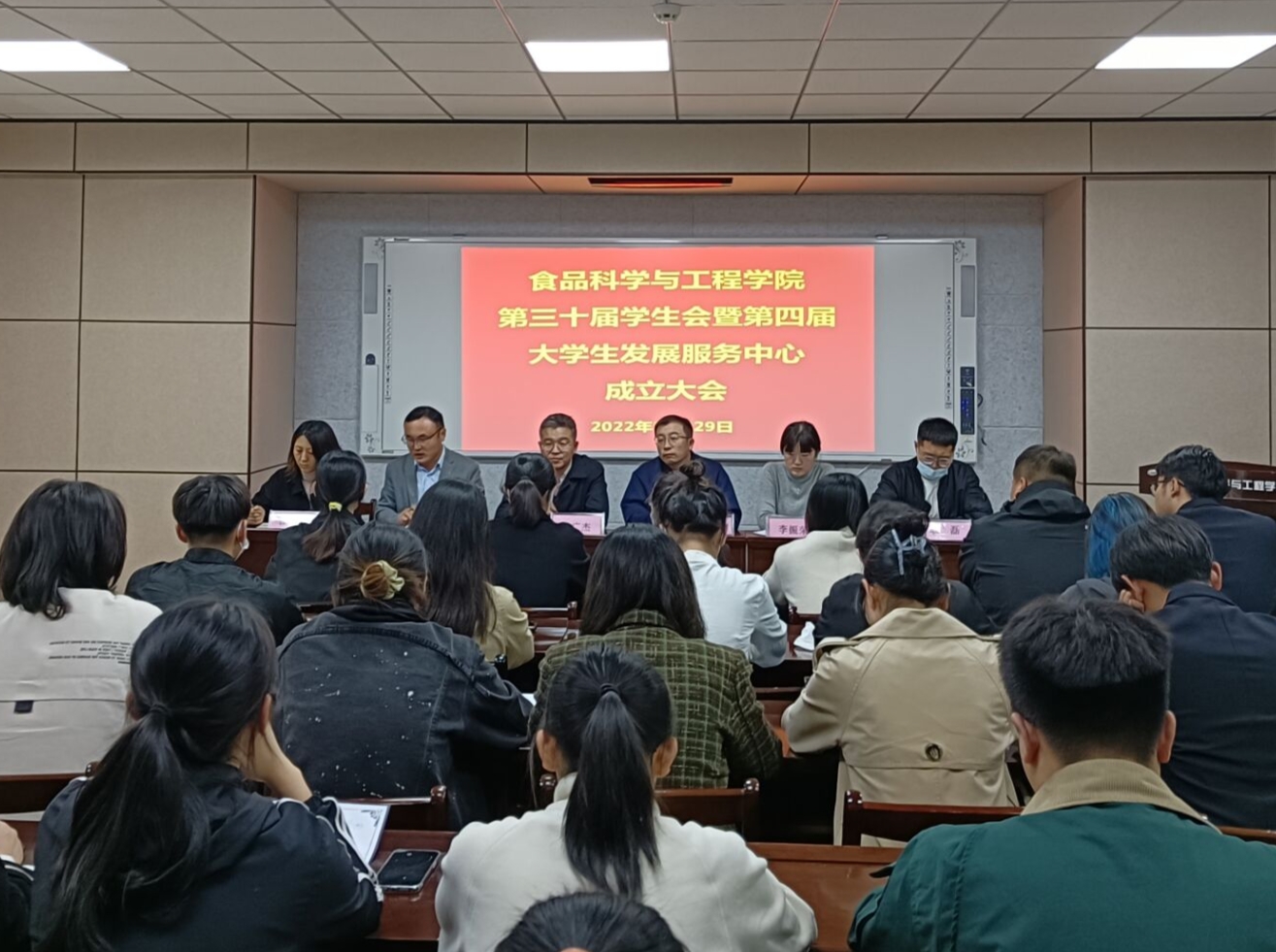 10月29日,tyc234cc 太阳成集团于食品楼举行第三十届学生会暨第四届大学生发展服务中心换届大会。学院党委书记车广杰,党委副书记、副院长刘晓华,团委书记李永青,辅导员李振荣、江巧宁、耿磊参加会议。第二十九届、第三十届学生会以及第三届大学生管理服务中心、第四届大学生发展服务中心成员参加本次换届大会,会议由团委书记李永青主持。