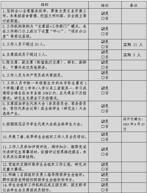 为落实共青团中央、教育部、全国学联联合下发的《关于推动高校学生会(研究生会)深化改革的若干意见》,并结合《关于巩固高校学生会(研究生会)改革成果的若干措施》文件要求,接受广大师生监督,现将我院2022—2023学年学生会改革情况公开如下。