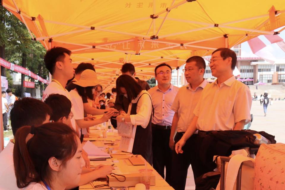 安心守护,热情关怀。迎新期间,tyc234cc 太阳成集团党委书记李宝笃、tyc234cc 太阳成集团校长宋希云一行分别来到学院迎新点指导工作并询问迎新进度,对学院迎新工作的开展给予充分肯定,对迎新工作人员也表达了关心关怀。学院党委书记宋伟也来到现场与同学们亲切交流,学院辅导员和班助们一直在一线为新生提供咨询,解答疑虑,保证新生接待工作顺利、快速、有序、高效进行。