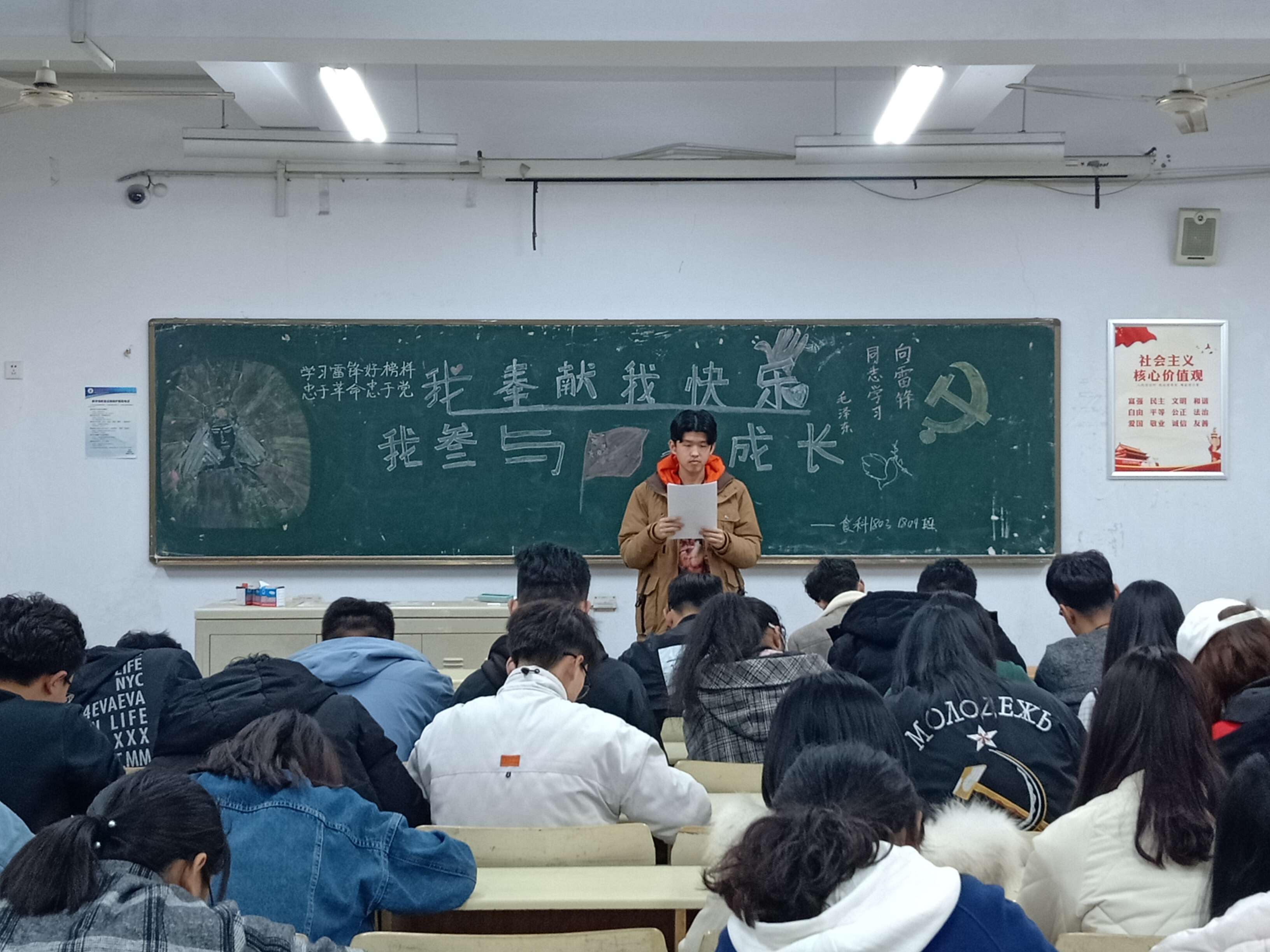 加强宣传,营造氛围。为保证教育效果,3月3日晚,tyc234cc 太阳成集团各班级利用3月3日晚政治学习时间召开“学习雷锋精神”主题宣讲活动,积极宣传“奉献、友爱、互助、进步”的志愿服务精神;3月4日早晨,学院举行升国旗仪式,院团委书记李永青对本次主题教育活动进行了动员部署,李永青要求全体学生深入学习雷锋先进事迹,崇尚雷锋高尚品德,感悟雷锋时代精神,以实际行动践行雷锋精神,弘扬社会主义核心价值观,为中华人民共和国成立70周年和纪念五四运动100周年献礼。