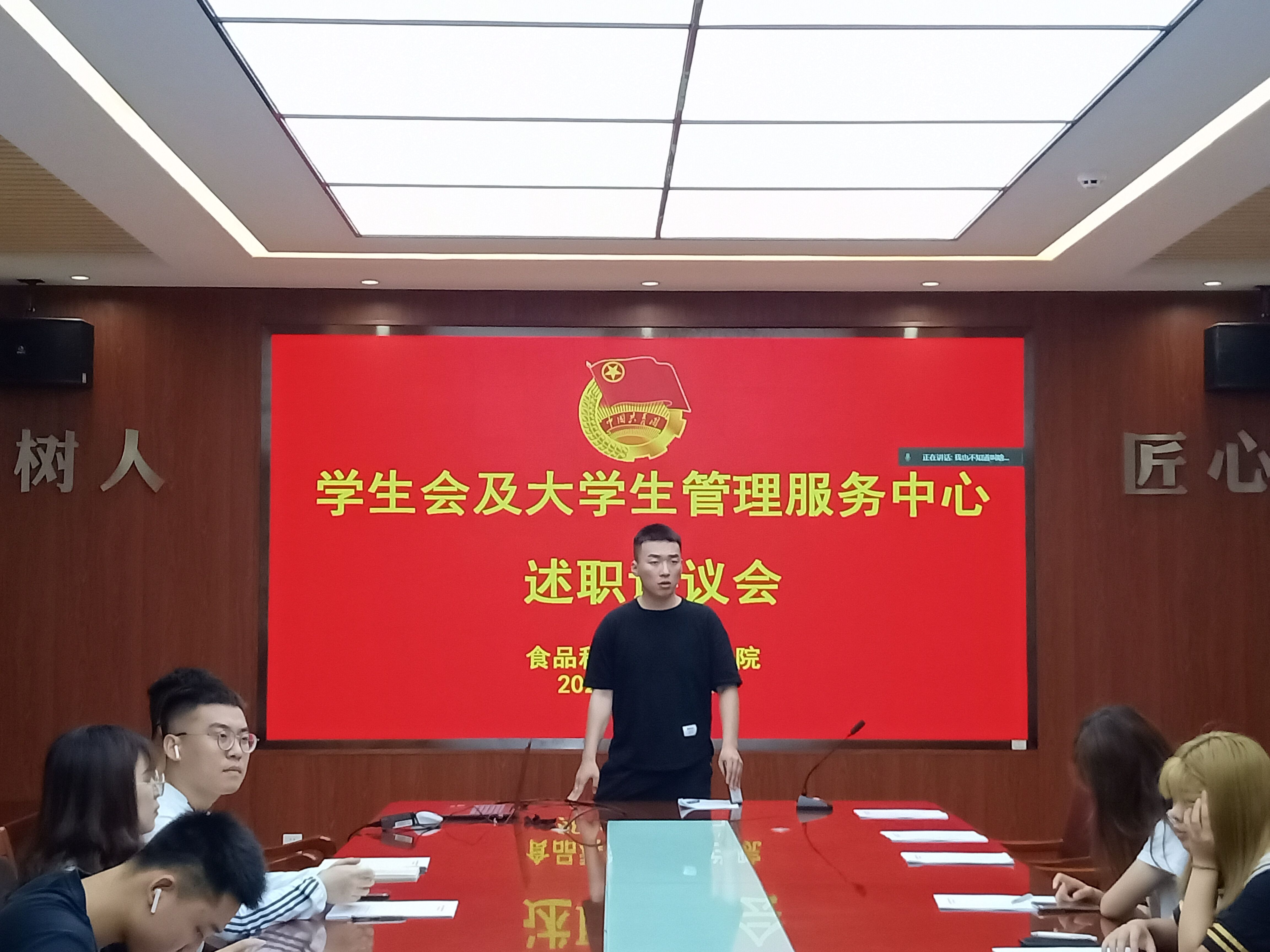 6月29日,tyc234cc 太阳成集团在食品楼召开学生会及大学生管理服务中心述职评议会。学院团委书记李永青,辅导员江巧宁、李振荣出席会议。学院第28届学生会和第二届大学生管理服务中心全体负责人参加会议。