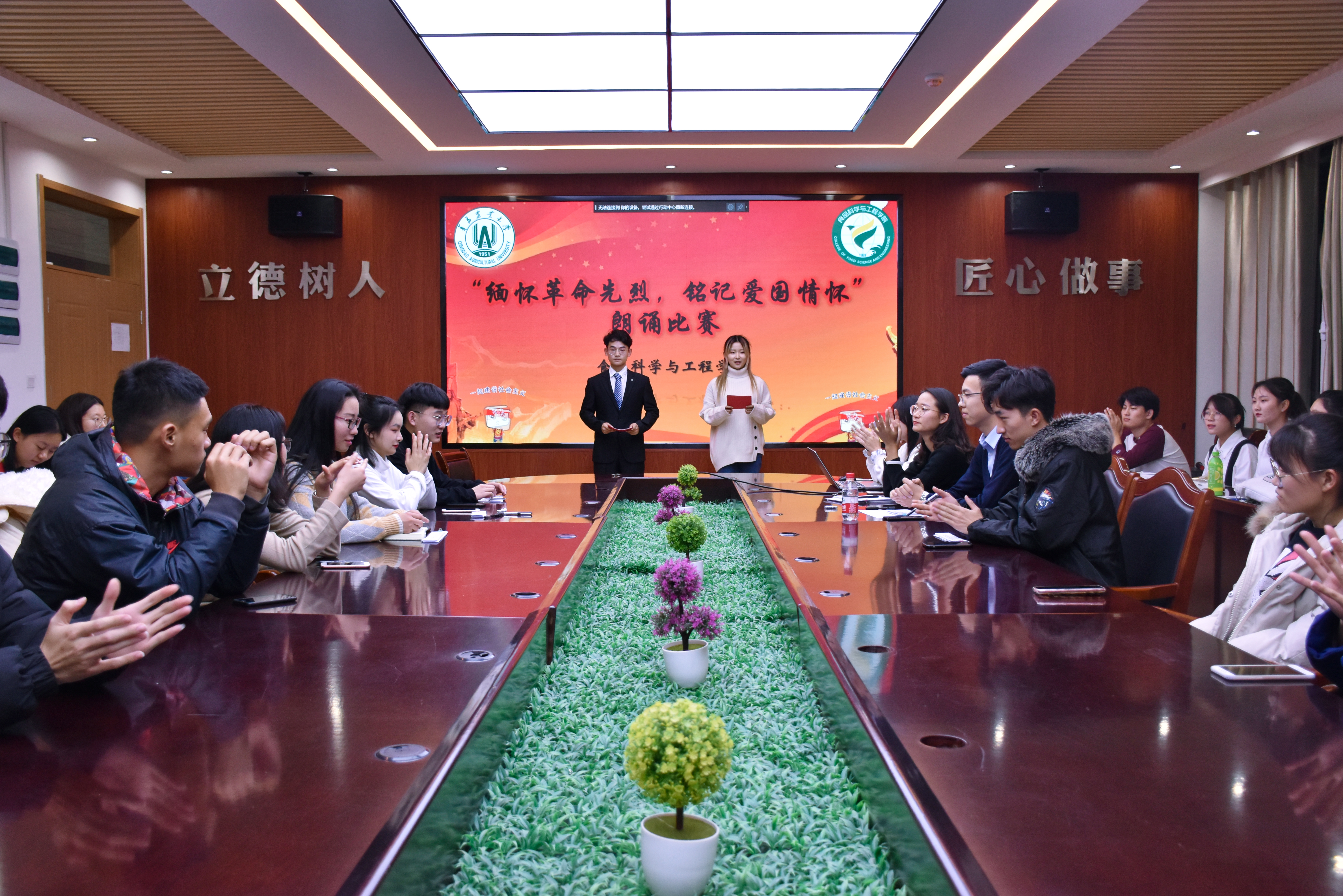 为深入贯彻学生爱国主义情怀,缅怀革命先烈,12月15日,tyc234cc 太阳成集团于食品楼举办“缅怀革命先烈,铭记爱国情怀”朗诵比赛。本次大赛由学院2017级学生代表担任评委,2019级学生积极参加。