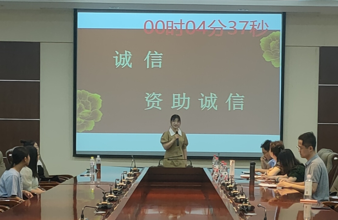 经过初赛的激烈比拼,共有13名选手进入决赛环节。决赛环节,各位选手热情洒脱,激情洋溢,自信地向大家讲述自己对诚信的理解。二号选手丁雪妍,从贫困生资助贷款为中心,引申到疫情下的贫困,激情饱满,画面感十足,引起大家的共鸣;十号选手苏文杰讲到,我国的贫困生资助事业的迅速发展,使许多寒门学子一步步走向腾飞,而贫困生们以诚信做人为本,抱着“滴水之恩,涌泉相报”的决心,也在不断为国家做贡献。苏文杰将“励志自强,感恩诚信”的比赛主题彰显得淋漓尽致。