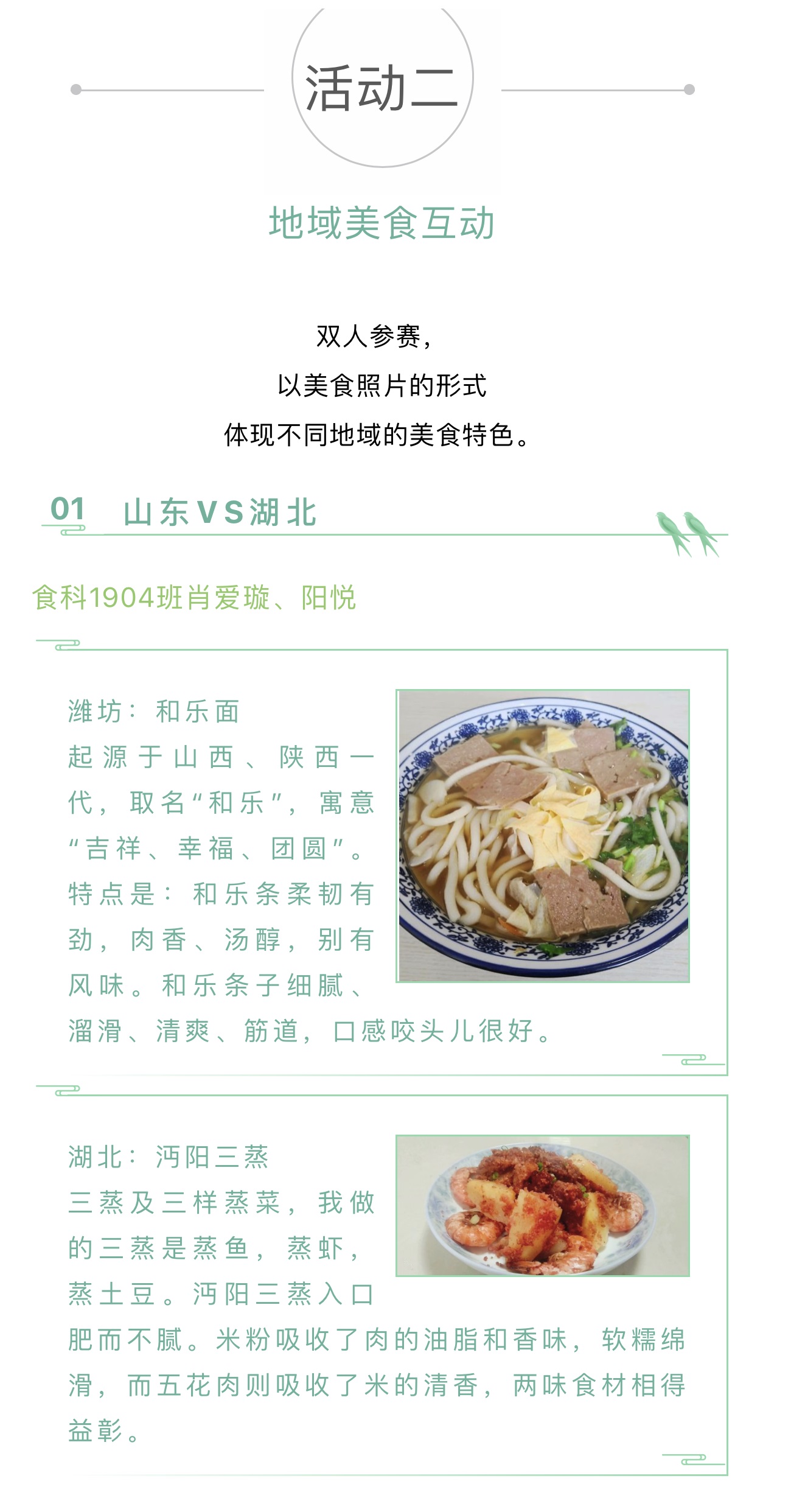 为积极响应“居家抗疫”号召,进一步丰富同学们“超长待机”的寒假生活,2月22日至3月14日,tyc234cc 太阳成集团举办“宅家日记之美食篇”厨艺比拼大赛系列活动,学院同学积极参加。