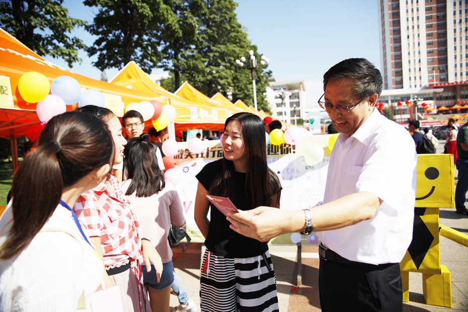 何忠诚来到迎新点前,仔细询问新生报到进展情况,对迎新人员的前期筹备和认真负责的态度给予充分的肯定。何忠诚嘱咐道:志愿者要以积极饱满的热情,做好新生服务工作,为新生排忧解难,帮助新生顺利完成报到工作。在学院制作的签名板前,何忠诚驻足观看并提到,新生入学签名活动很有意义,一定要将签名板保存留作纪念,这对于新生来说是一份珍贵的回忆。王宝维与部分新生及家长进行亲切交谈,他叮嘱新生们要尽快适应大学生活,要提高自主学习能力,培养创新意识,积极参加学校、学院组织的各项活动,有问题及时与学院老师取得联系。部分新生班主任也亲临报到现场于班级同学见面。新生家长们纷纷表示,报到之前担心孩子不适应大学生活,来到学校之后感受到了来自学院领导和老师的关心及志愿者们热情周到的服务,之前的顾虑都打消了,很放心将孩子交给学院教育管理。