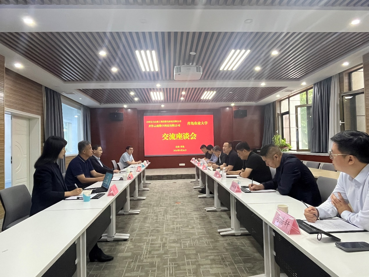 赵金山代表学校对来访客人表示欢迎,从历史概况、亮点工作、改革创新举措、未来发展方向等方面介绍了学校的基本情况,重点从体制机制创新、人才队伍建设、资源要素集聚、社会服务开展等方面介绍了学校近年来紧紧围绕国家重大战略联合多方共建青岛特种食品研究院的工作开展情况。他指出,加快发展新质生产力,需要教育创新、科技创新和产业创新等多措并举,也是一项需要政府、企业、高校等多元主体协同推进的系统工程。敦化林业有限公司建设历史悠久,在资源开发、产品经营、社会服务等多方面积累了丰富的经验,希望双方通过此次交流座谈,进一步开展深层次合作交流,开创校企优势互补、资源共享、互利共赢的良好局面。
