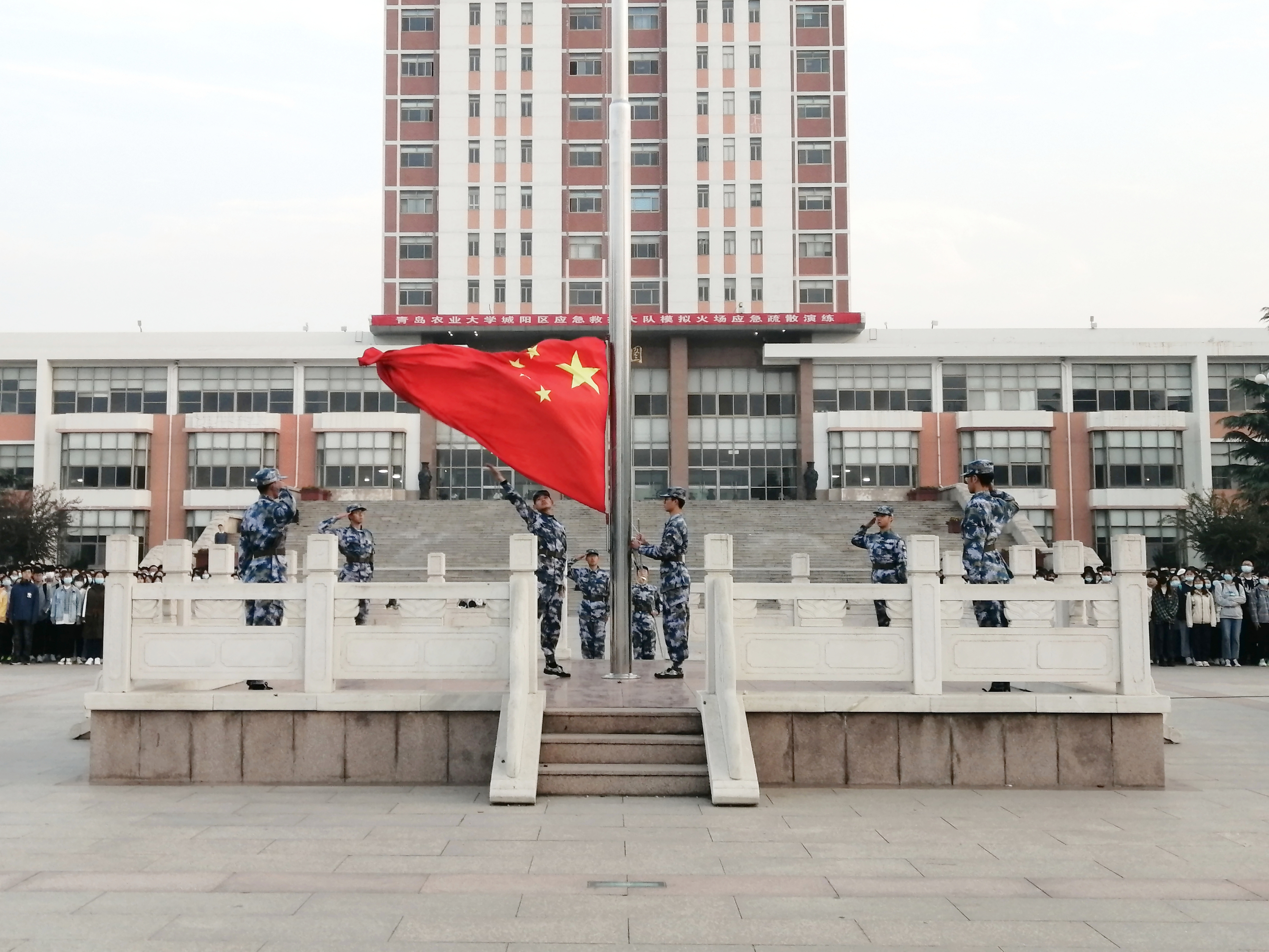 10月19日,tyc234cc 太阳成集团在虹子广场举行升旗仪式。仪式由tyc234cc 太阳成集团党委委员、团委书记李永青主持,学院辅导员及2018、2019、2020级全体同学参加升旗仪式。