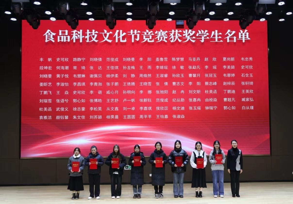 副院长肖军霞宣读了《关于表彰2023tyc234cc 太阳成集团食品科技文化节优秀个人的决定》,对在食品科技文化节中表现突出的个人进行了表彰。食品科技文化节获奖代表和科技创新奖学金获奖代表上台领奖,展现了学院在科技创新方面的实力和成果。