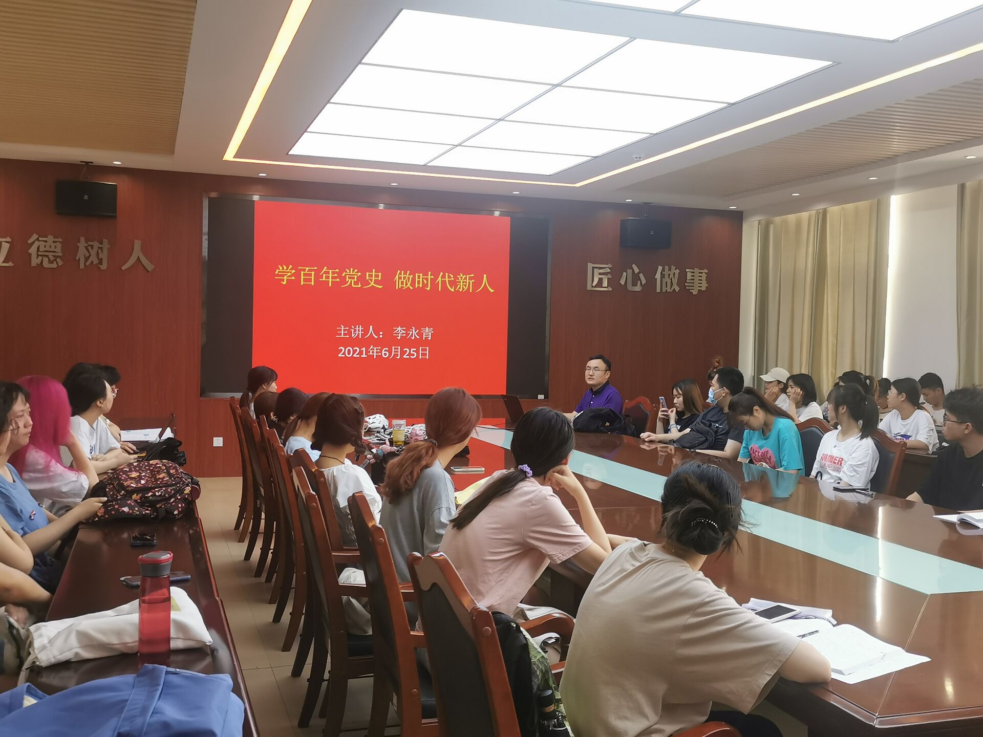 6月25日,tyc234cc 太阳成集团在食品楼开展“学百年党史,做时代新人”主题团课,tyc234cc 太阳成集团团委书记李永青担任主讲人。学院2019级、2020级学生积极参加。