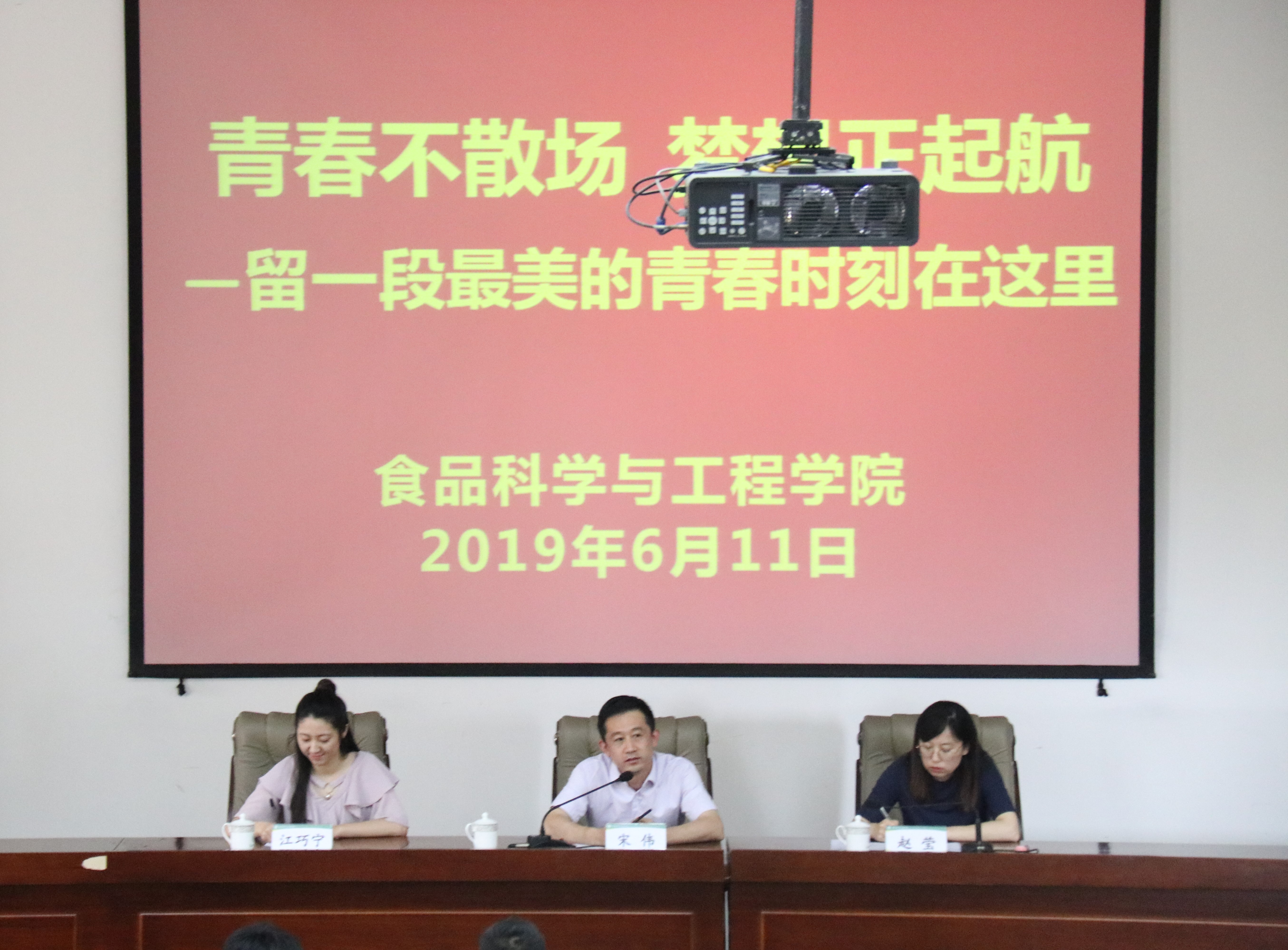 6月11日,tyc234cc 太阳成集团在学术会馆第二报告厅召开“青春不散场,梦想正起航”毕业生话别会。学院党委副书记宋伟出席,辅导员赵莹、江巧宁以及2019届全体毕业生参加。