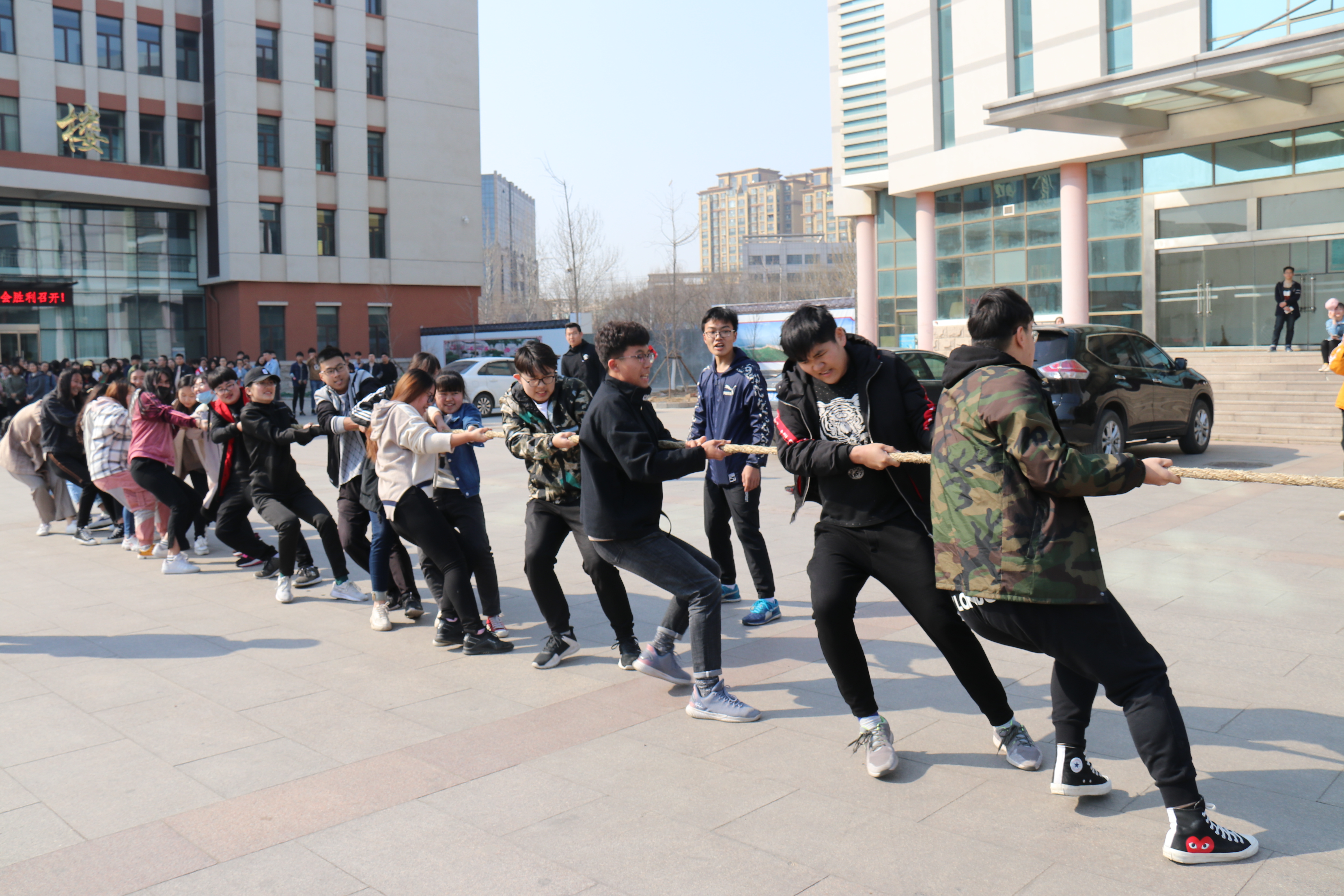 3月16日,tyc234cc 太阳成集团于文体馆南门举办“走下网络、走出宿舍、走向操场”主题拔河比赛。学院2018级同学积极参加,共有12支队伍进行角逐。