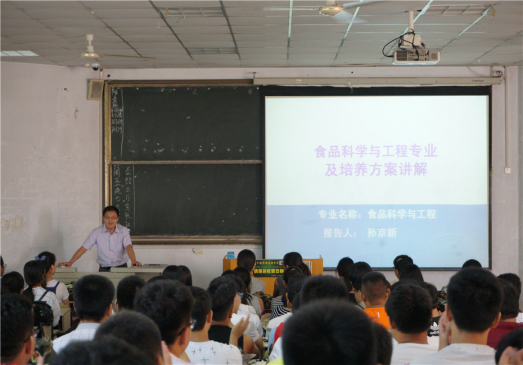 会上,五位本科专业负责人就本专业的历史沿革、课程设置、人才培养、就业前景、行业发展趋势等方面向新生们做了详细的介绍,就教学、科研等各项工作中取得的成果以及大学生在“挑战杯”、“大学生创新立项”、“食品科技文化节”等各项活动、比赛中获得的各种奖项做了展示。他们鼓励新生们多与老师沟通,常进实验室,注重理论与实践相结合,不断提升自己的创新实践能力。讲解中,老师们还强调了职业生涯发展规划的重要性,希望新生们进一步强化职业发展意识,及早确立职业方向,明确发展目标,有针对性的提升职业素养,为将来顺利就业和良好的职业发展打好基础。