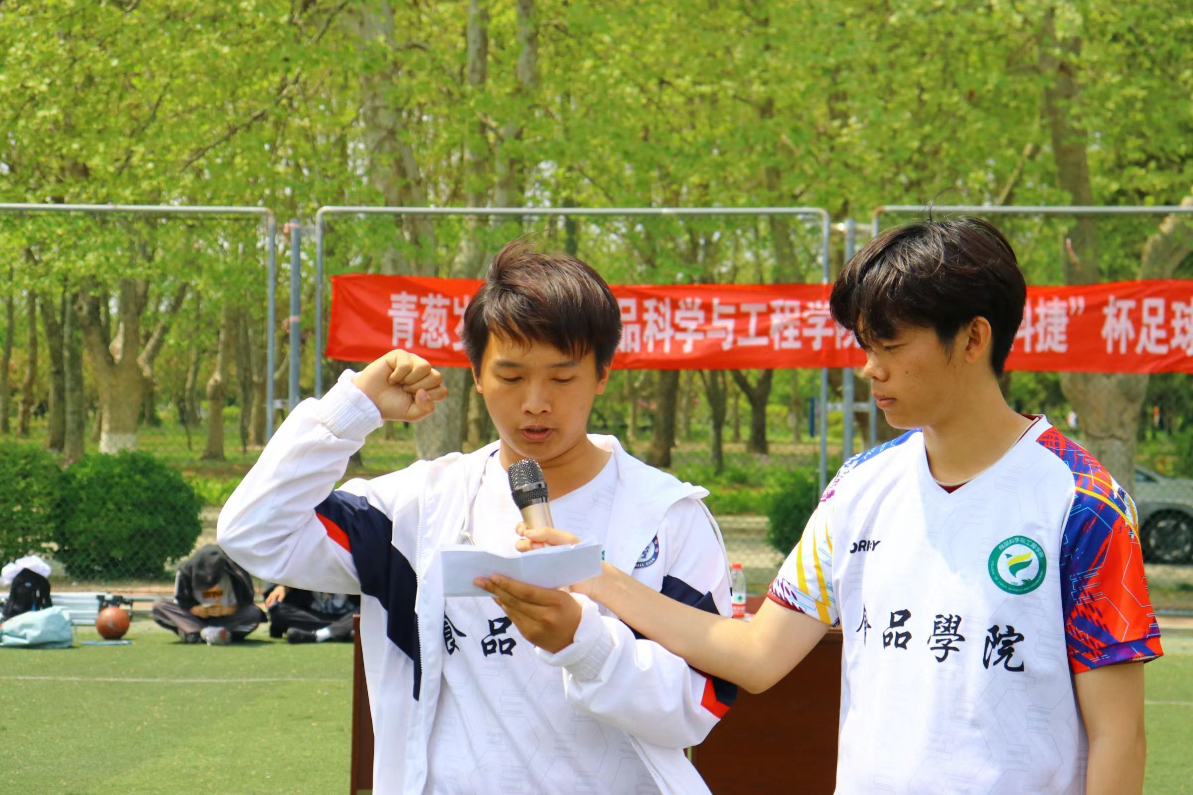 开幕式上,tyc234cc 太阳成集团舞蹈队同学带来了啦啦操表演为运动员们加油打气,食安创新2201班王书彬作为裁判员代表宣誓,食安2203班初明霖作为运动员宣誓。辅导员张易希望同学们借本次比赛体验足球的热情,享受足球的快乐,挥洒激情活力,在比赛中磨炼意志,增强团队凝聚力,赛出风格、赛出水平。