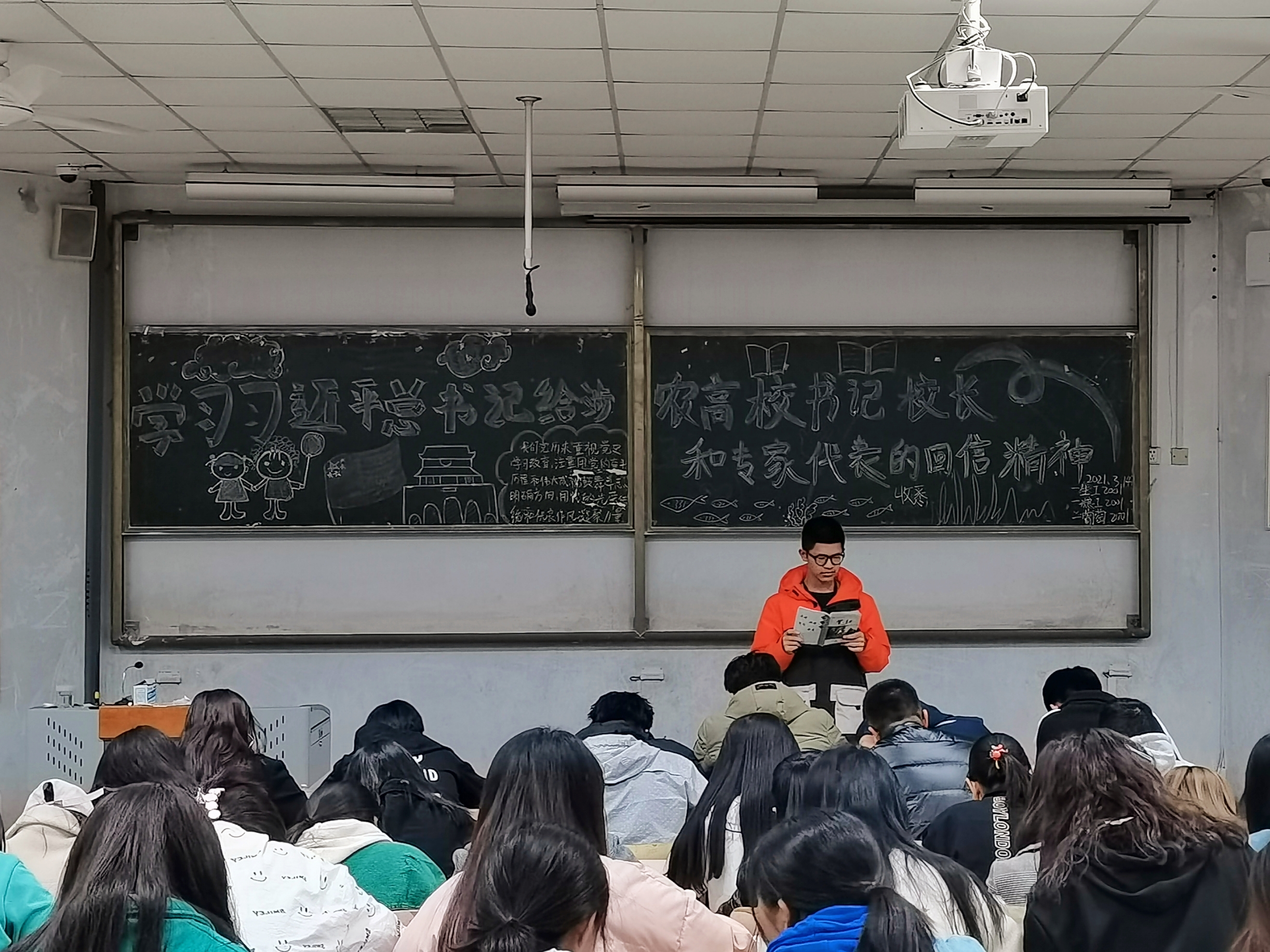 为符合当今社会重视农业,重视农学的现状,3月14日,tyc234cc 太阳成集团在教学区开展“学习习近平总书记给全国涉农高校的书记校长和专家代表的回信”主题政治学习。2019级,2020级同学积极参加。