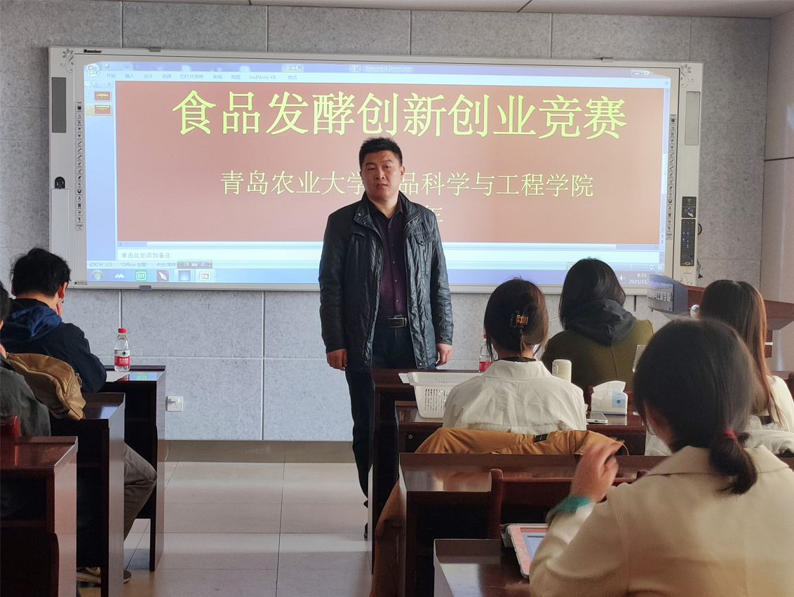 11月26日,tyc234cc 太阳成集团于食品楼会议室举行食品科技文化节系列活动之第二届食品发酵创新创业竞赛。学院教师谭海刚、黄国清、张名爱、赵方圆、陈铁军出席并担任评委,共有18个队伍进入决赛。