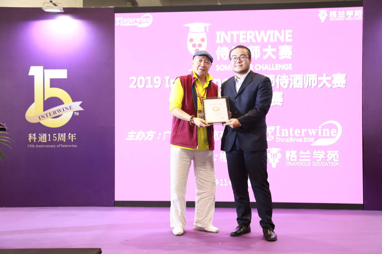 2019年赛事于6月起已在广州、北京、南京、杭州、沈阳、成都等全国23个城市举办初赛。11月9日在广州琶洲广交会11.2号馆二号活动区举行Interwine侍酒师大赛总决赛。该比赛是我国葡萄酒从业人员公认的权威比赛之一,并且不分年龄段与从业时间。总决赛上,我校郑卓琦同学凭借扎实的专业知识以及对葡萄酒礼仪的熟练掌握,在侍酒服务、现场问答、自由发挥等环节表现优异,展现了自己高水平的品酒侍酒能力,从众多资深葡萄酒从业者中脱颖而出,得到评委们的认可,最终荣获总决赛亚军的好成绩。