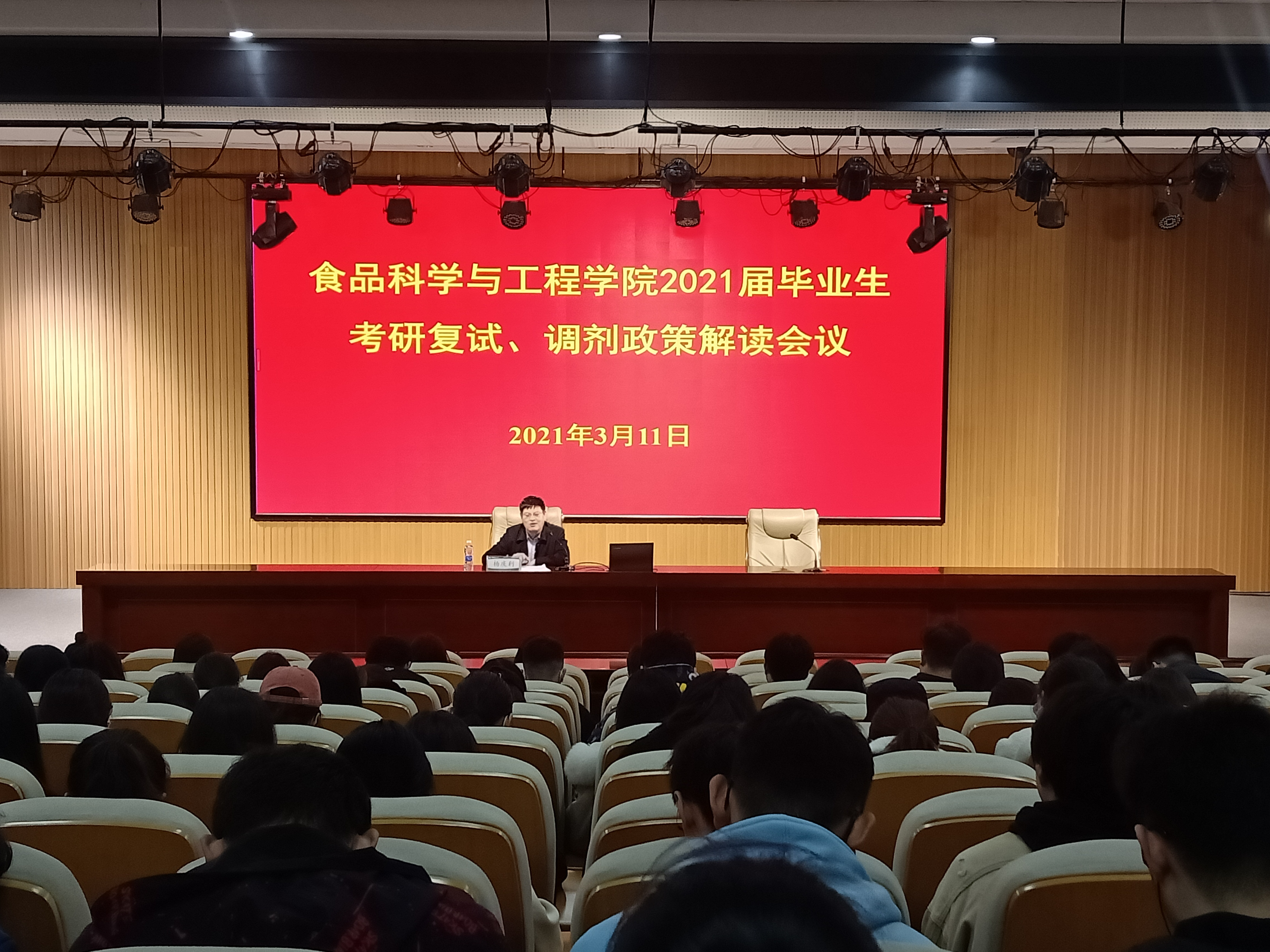 3月11日,tyc234cc 太阳成集团在学术会馆第二报告厅召开2021届毕业生考研复试、调剂政策及就业政策解读会议。学院2017级全体学生参加。会议由学院党委委员、团委书记李永青主持。