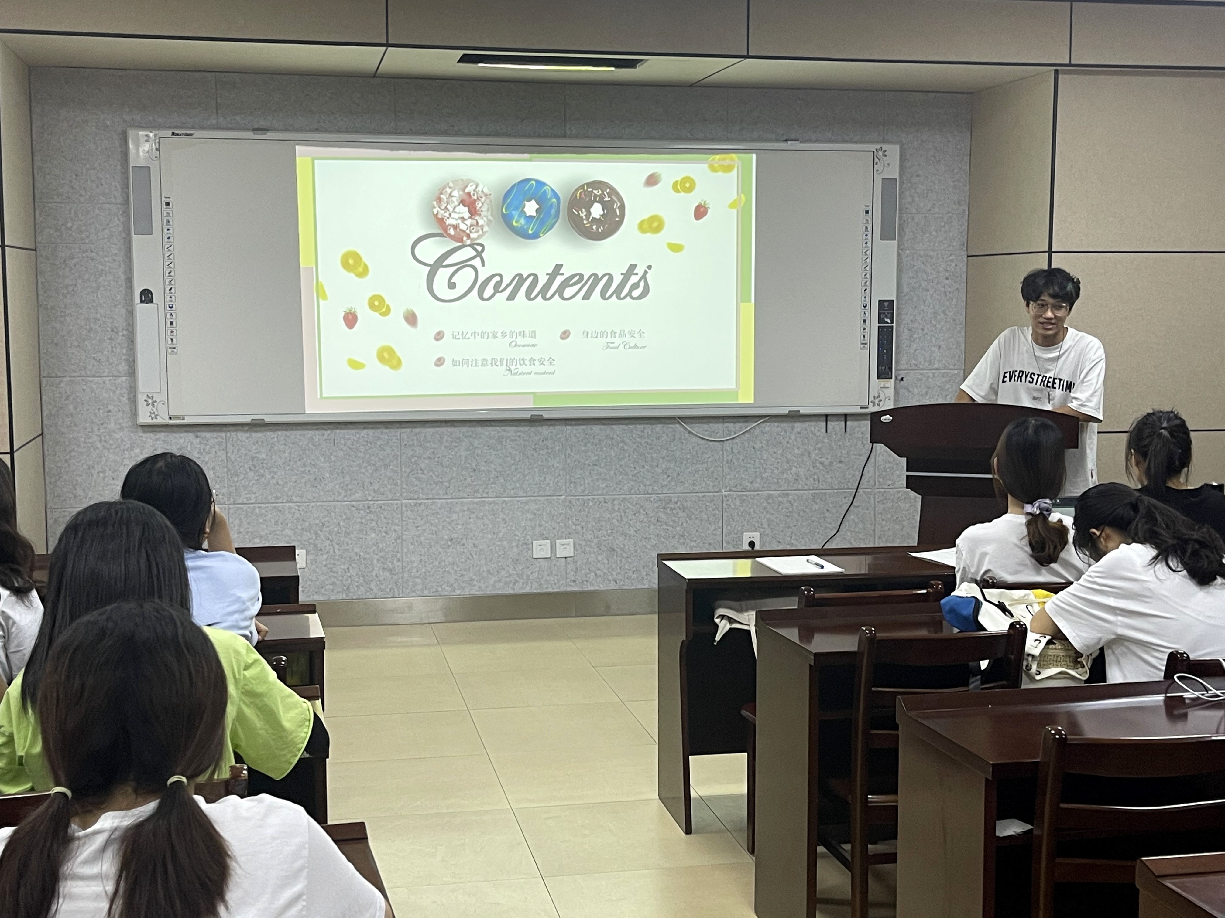 活动中同学们通过精彩纷呈的美食宣讲,向现场全体人员介绍了江西、东北、山东等各个地方的美食。其中,生工2001郑金松队用精美的PPT和绘声绘色的演讲介绍了江西米粉,他以巧妙的视角讲述了米粉与地域的羁绊,让一碗米粉显得有滋味更有情谊。最后,经过激烈角逐,生工2001郑金松队得一等奖,食科2001尉肖铭队、质检创新徐晓宇队获二等奖,质检2002高翔宇队、质检1903孙雪辰队等获三等奖。