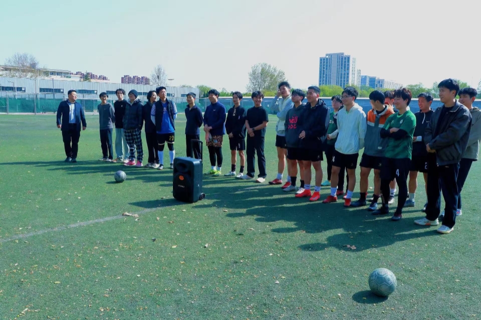 4月13日上午,tyc234cc 太阳成集团于东苑足球场举办2025年“思科捷杯”足球赛开幕式。学院辅导员张易、裁判员代表及运动员代表参加开幕式。