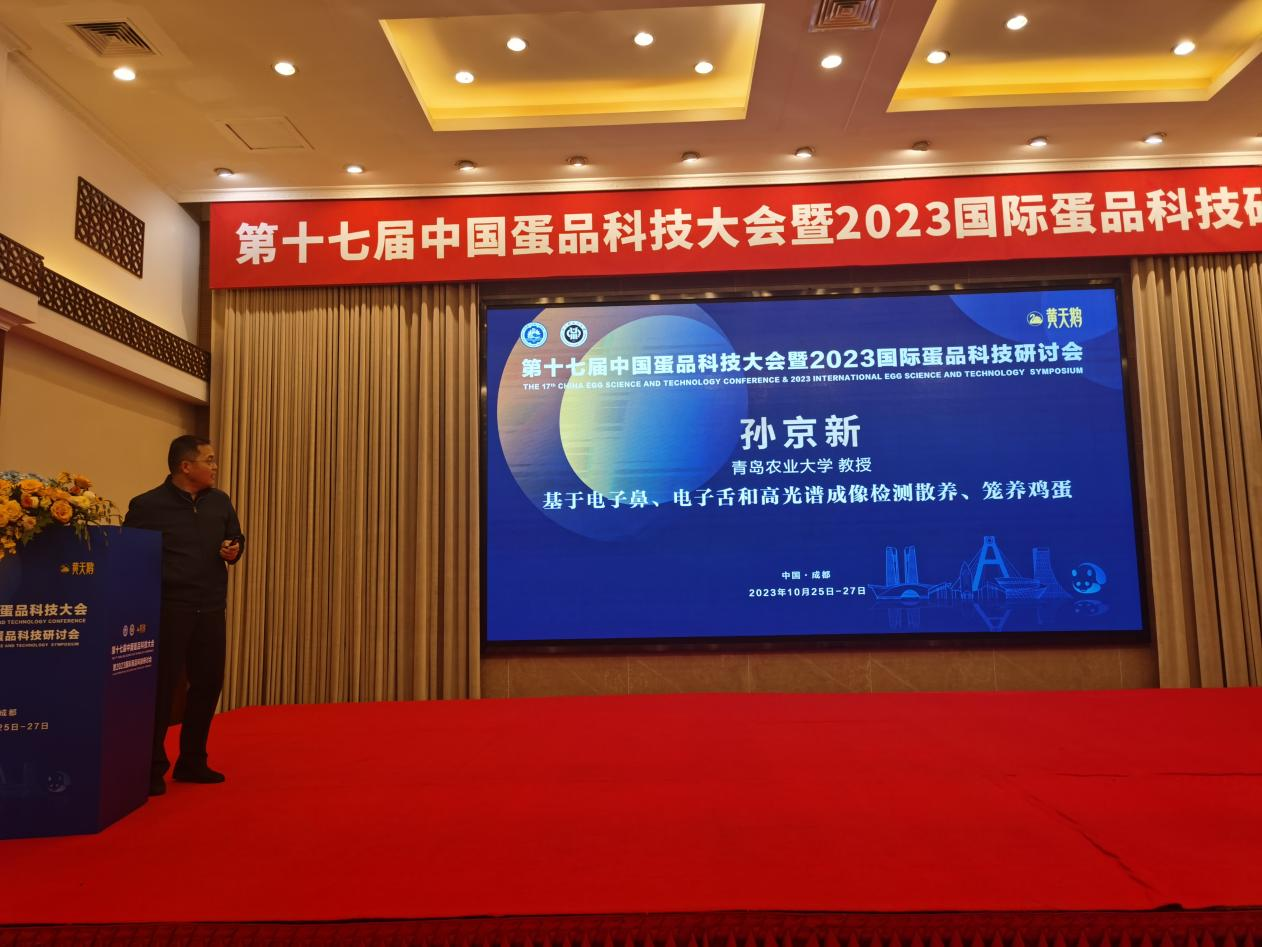 孙京新教授在会上作题为“基于电子鼻、电子舌和高光谱成像检测散养、笼养鸡蛋”的学术报告。