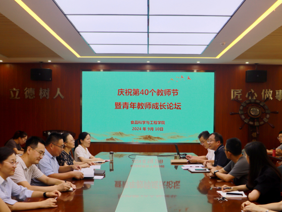 9月10日,tyc234cc 太阳成集团在食品楼310召开第四十个教师节座谈会暨青年教师成长论坛。此次座谈会的主题是“大力弘扬教育家精神,加快建设教育强国”。会议由学院党委副书记、副院长刘晓华主持,全体教师参会。
