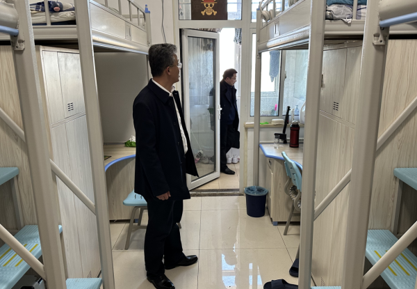 3月1日,学院党委书记车广杰、党委副书记、副院长刘晓华、辅导员耿磊一起走访平度校区学生宿舍,仔细查看了宿舍内务整理、卫生安全等情况。深入平度校区课堂一线,了解平度校区上课出勤情况,并与平度校区辅导员于晓涵进行交流。