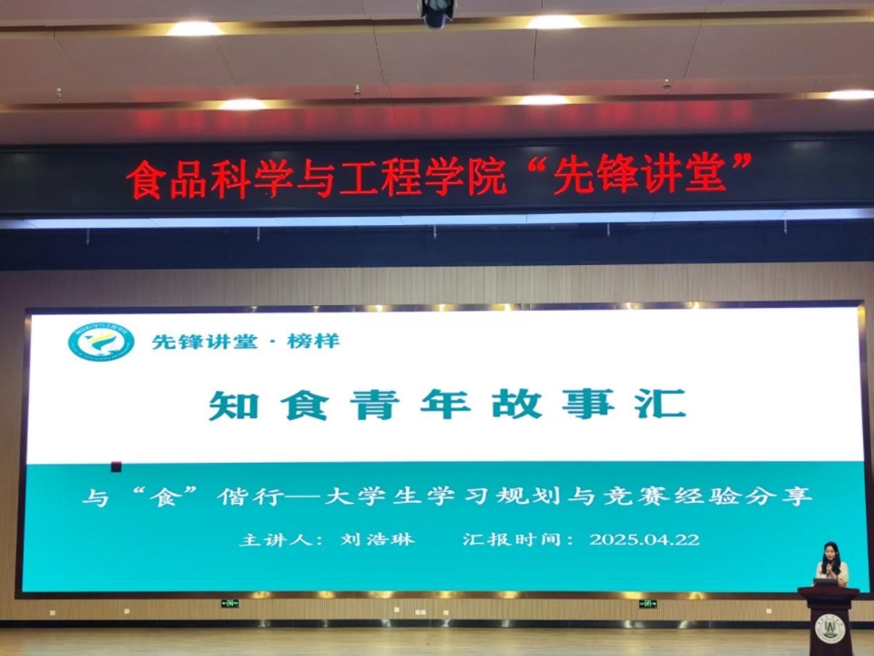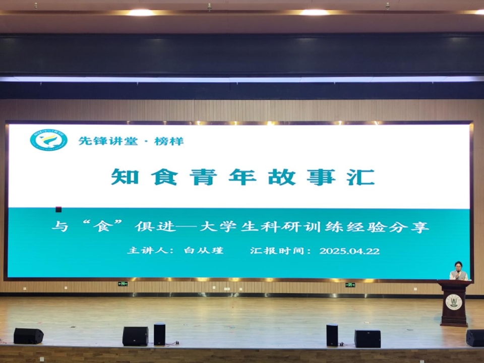 分享成长经验,传递榜样力量,4月22日,tyc234cc 太阳成集团在平度校区大学生创业中心报告厅举办“知食青年故事汇”,2021级国家奖学金获得者白从瑾、刘浩琳围绕学业规划与科研创新作,向2024级全体本科生讲述了他们的“大学故事”。