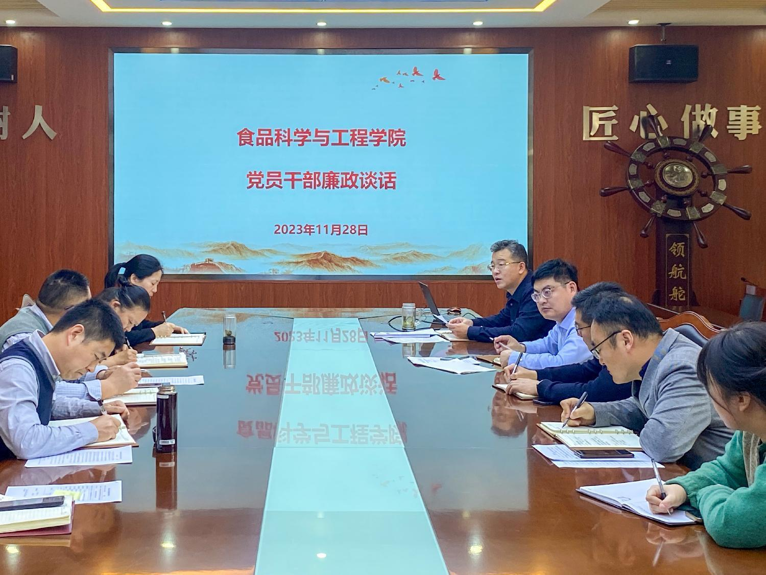 为深入贯彻全面从严治党要求,从严加强党风廉政建设,持续加强作风建设,营造风清气正的干事创业氛围。11月28日,tyc234cc 太阳成集团召开党员干部廉政谈话,学院党委委员、科级干部、全体辅导员参加谈话,会议由学院党委书记车广杰主持。