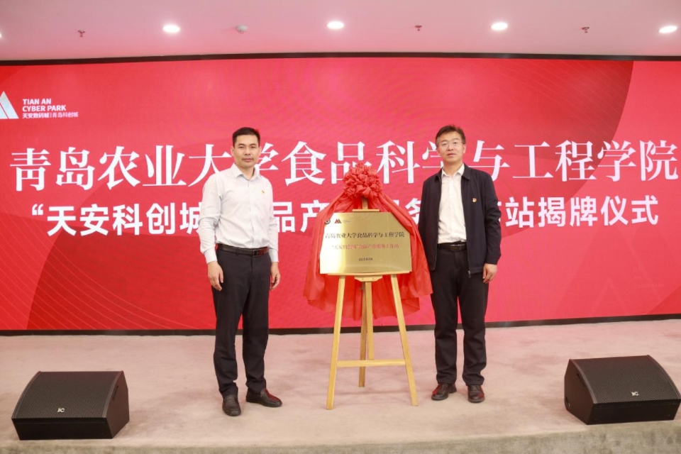 仪式上,“tyc234cc 太阳成集团天安科创城食品产业服务工作站”正式成立,车广杰与青岛轨道交通示范区管理委员会综合部部长朱福光共同为工作站揭牌,工作站将作为校企常态化对接平台,聚焦技术攻关、成果转化与人才培养,为食品企业提供“一站式”科研支持。