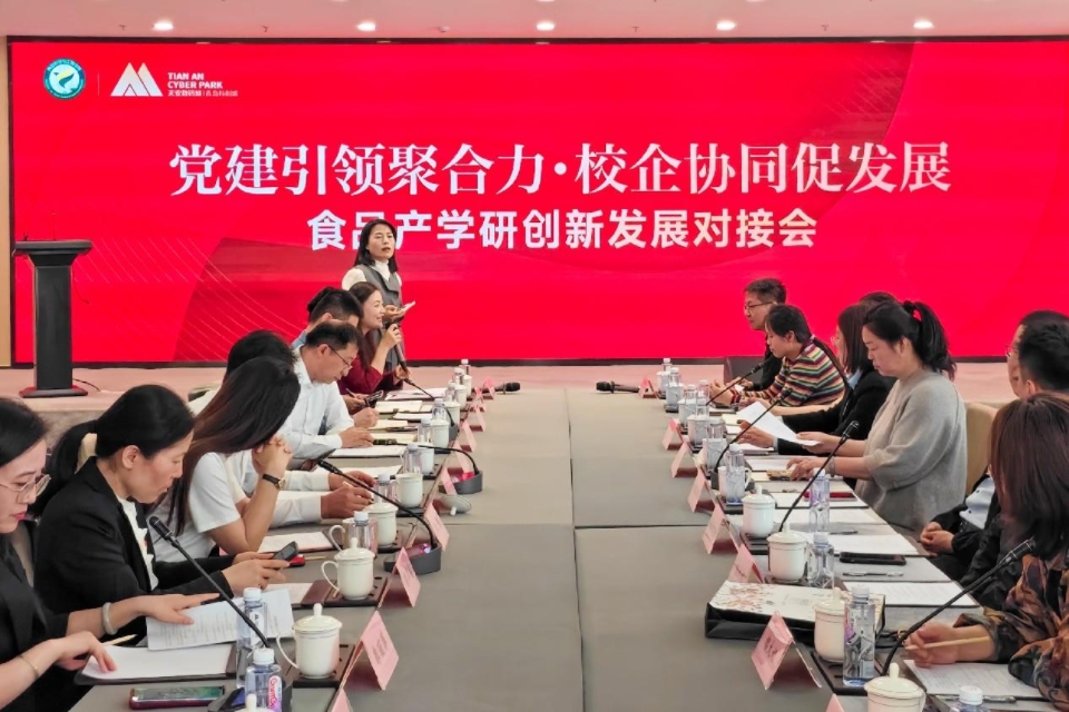 食品产学研创新发展对接大会上,学院副院长肖军霞详细介绍了学院科研成果、科研研究方向和可转化项目。校企双方围绕企业现有技术难点、未来研发需求等进行了交流座谈并达成初步合作意向。