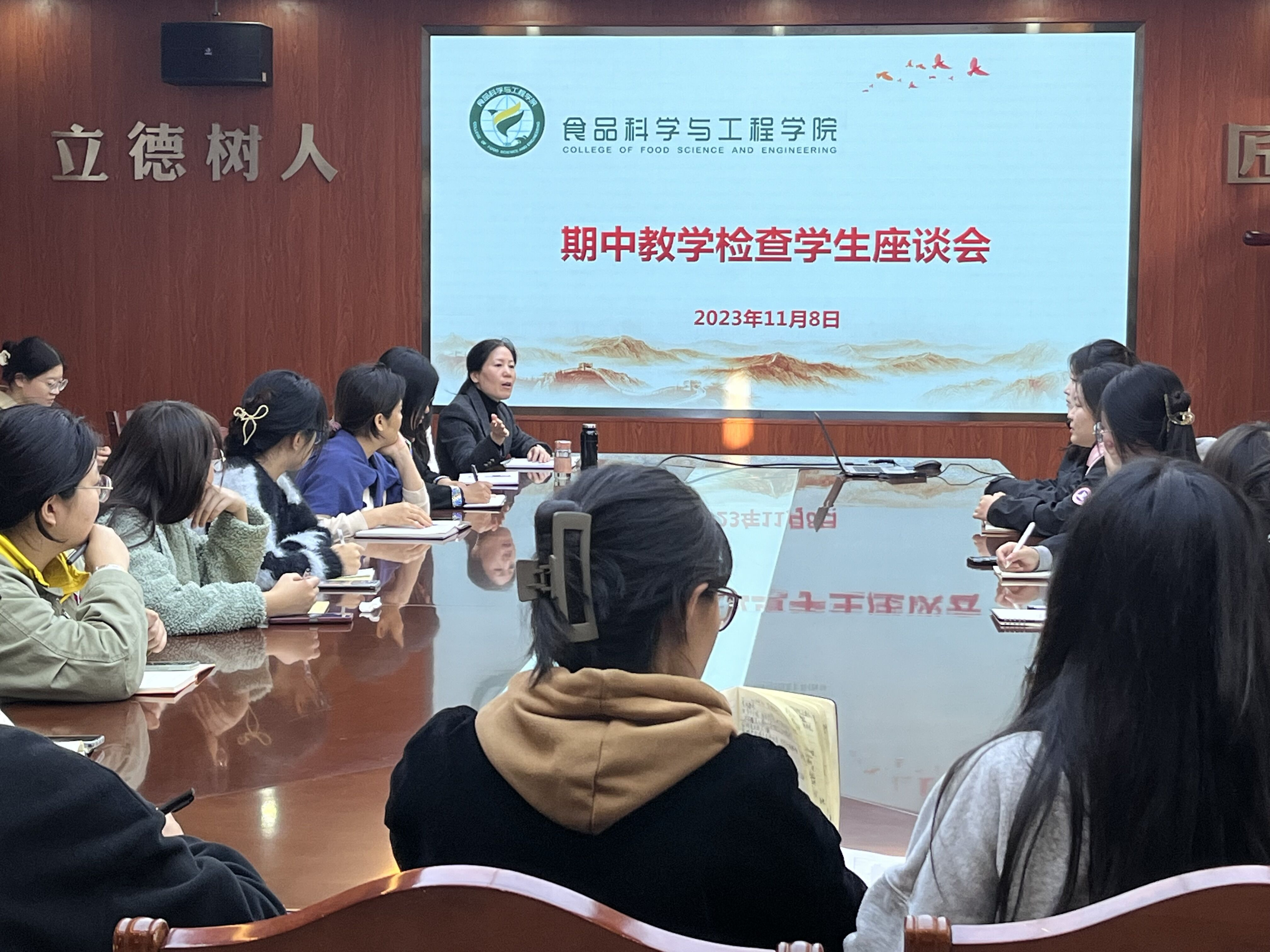 11月8日,tyc234cc 太阳成集团在食品楼310召开期中教学检查学生座谈会。李曼、王风舞、徐碧媛三位老师与30余名各级学生代表参加会议,座谈会由副院长肖军霞主持。