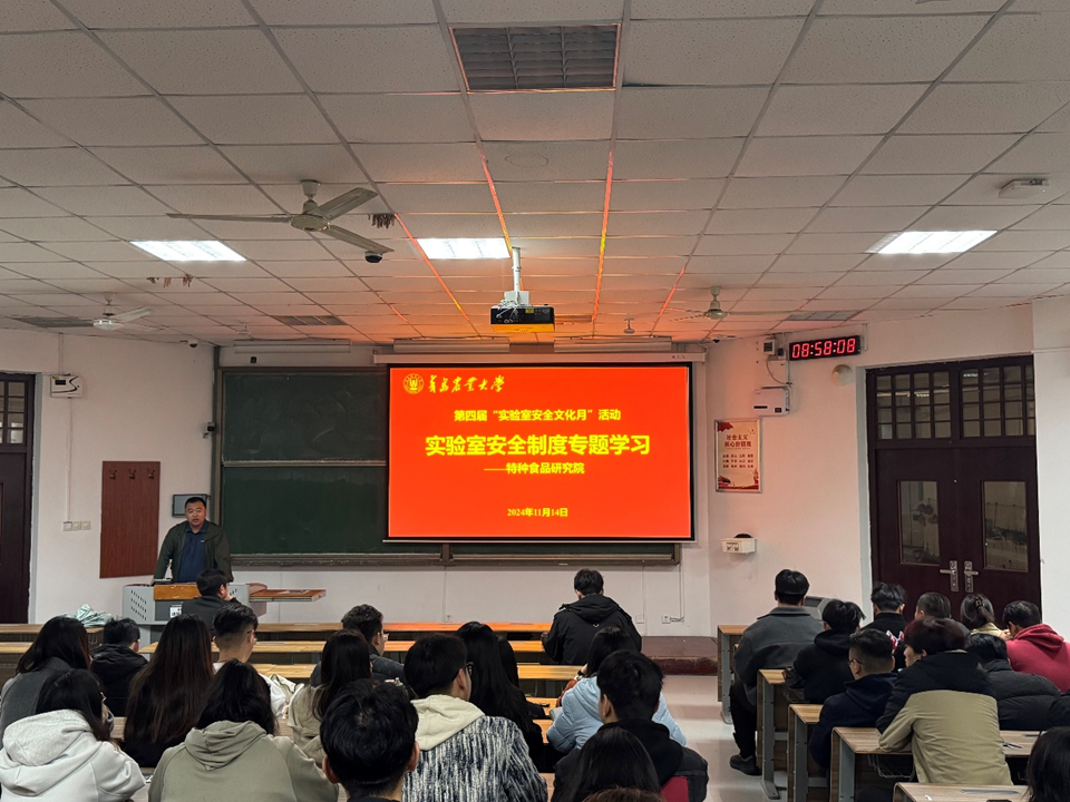 为强化学生安全意识,营造校园安全文化氛围,切实做好实验室安全及消防安全管理工作,特种食品研究院积极响应学校“第四届实验室安全文化月”以及“2024年校园消防安全宣传月”活动精神,组织实验室联络人及2024级硕士研究生开展实验室安全制度学习以及消防安全培训活动,研究院副院长高飞主持活动。