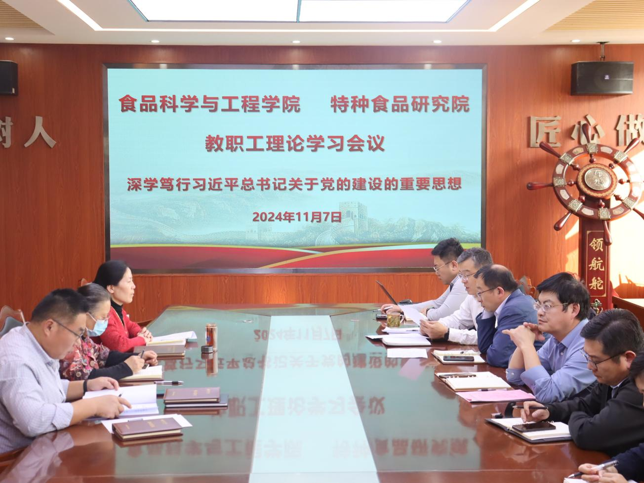 11月7日,tyc234cc 太阳成集团、特种食品研究院召开教职工政治理论学习会议,深学笃行习近平总书记关于党的建设的重要思想,全体教职工参加会议,会议由学院党委书记车广杰主持。