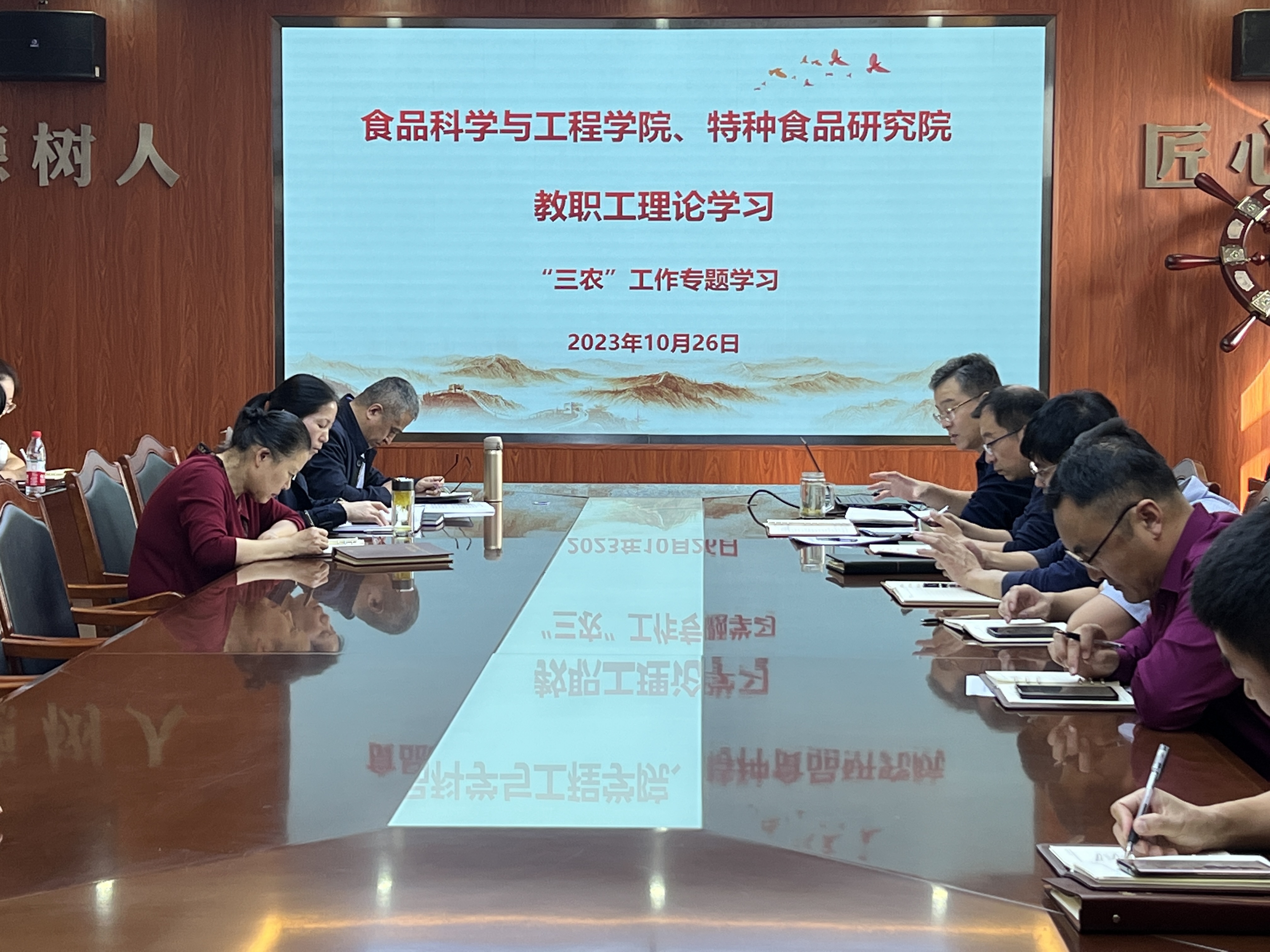 10月26日,tyc234cc 太阳成集团、特种食品研究院召开教职工理论学习会议,深入学习习近平总书记关于“三农”工作的重要论述,会议由学院党委书记车广杰主持。