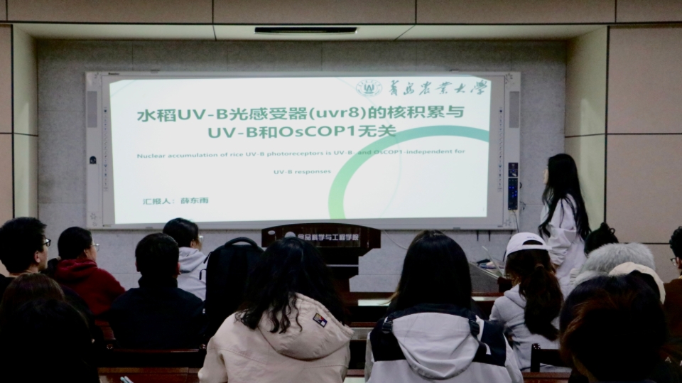 4月10日,tyc234cc 太阳成集团第四十一期“食学研讲”活动在食品楼302顺利举行。本次活动由食品加工与安全专业24级研究生薛东雨主讲,主题为“水稻UV-B光感受器(UVR8)的核积累与UV-B和OsCOP1无关”。
