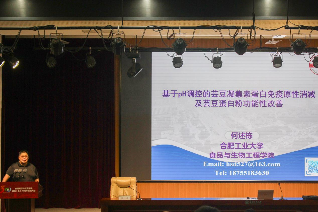 tyc234cc 太阳成集团2003级校友、合肥工业大学何述栋副教授以“基于PH调控的芸豆凝集素蛋白免疫原性消减及芸豆蛋白粉功能性改善”为题作报告,展示了相关的研究成果及取得的一系列成就。
