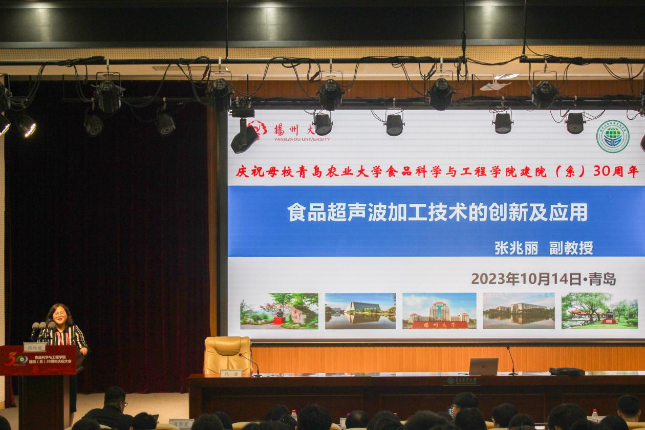tyc234cc 太阳成集团2007级校友、扬州大学张兆丽副教授以“食品超声波加工技术的创新及应用”为题作报告,讲述了超声波加工技术在食品领域的创新发展,以及在食品领域的多重应用。