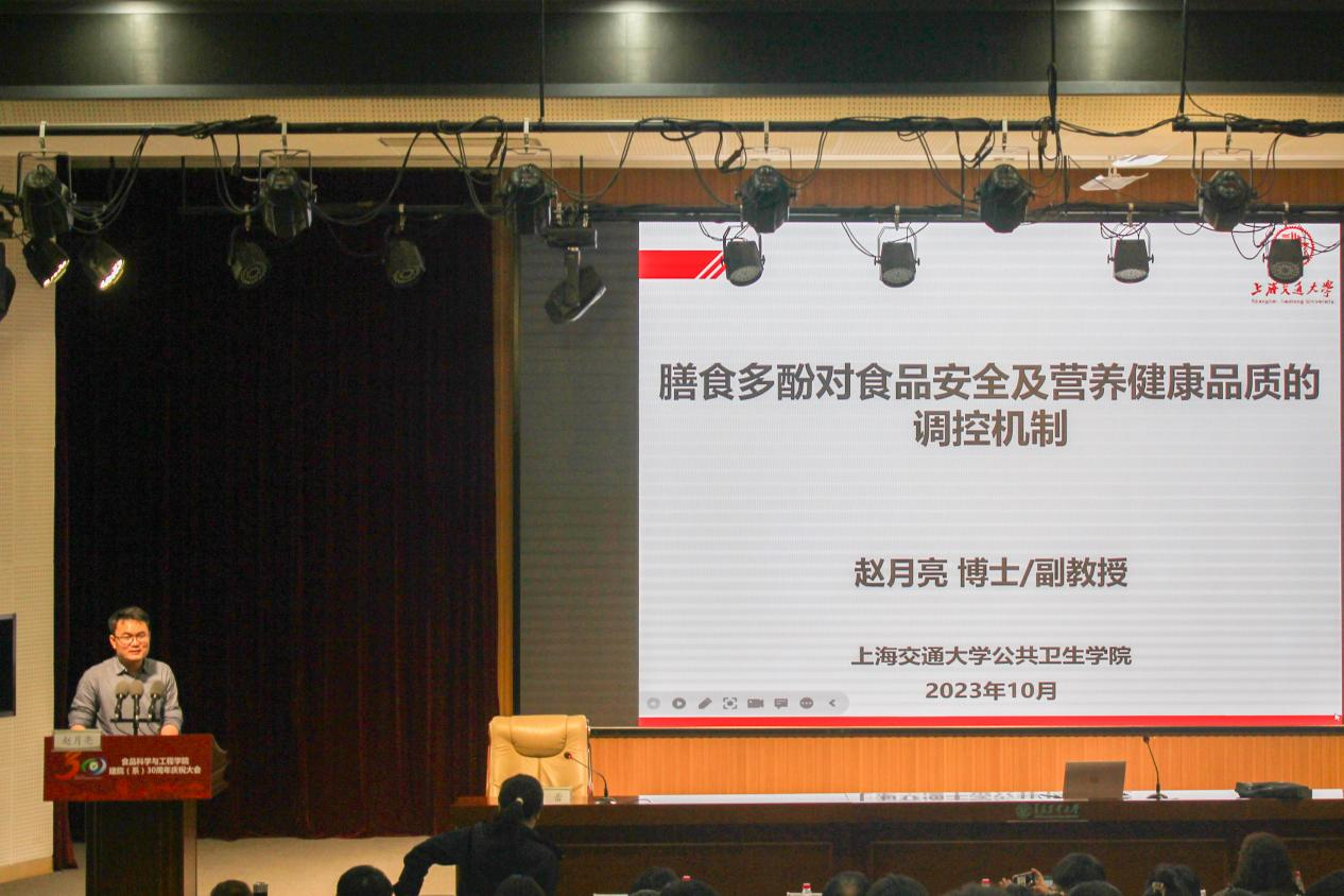 tyc234cc 太阳成集团2006级校友、上海交通大学赵月亮副教授以“膳食多酚对食品安全及营养健康品质的调控机制”为题作报告,展示了膳食多酚对食品安全以及营养的多重调控,并呈现了其研究成果