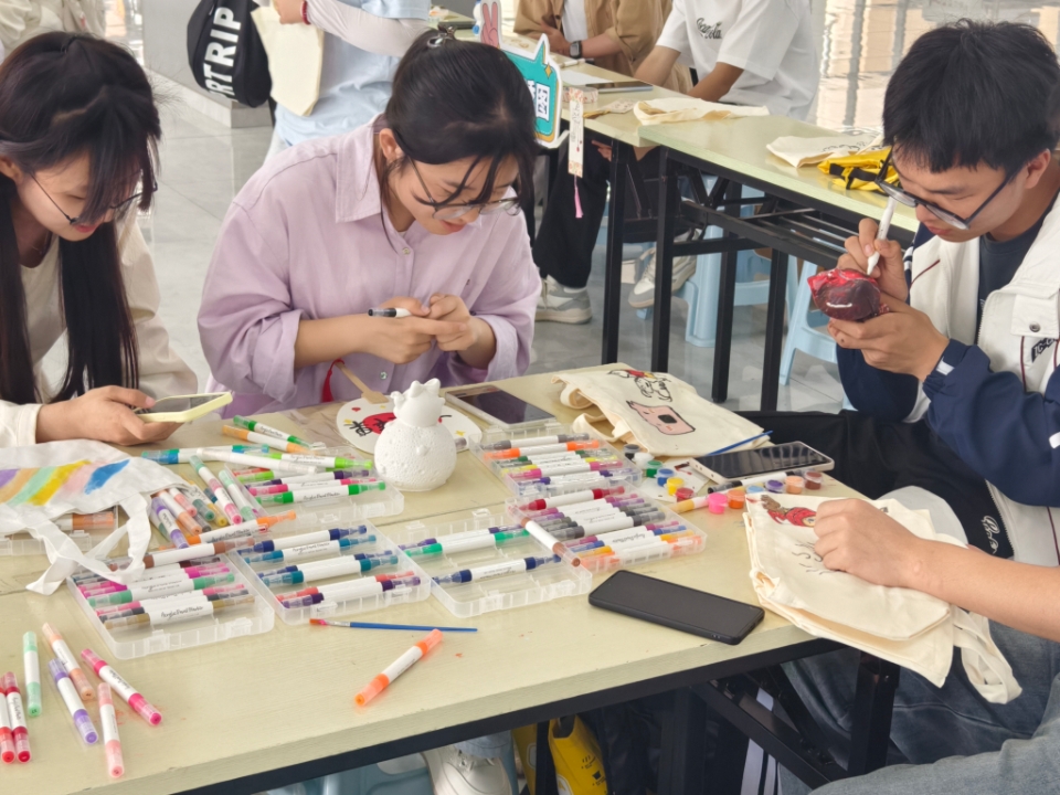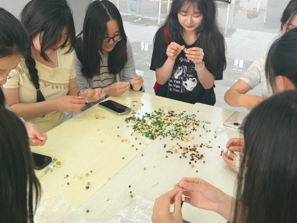 本次彩虹跑创新设置动态、静态活动共同开展,其中设有8个动态关卡分布于学校各处,各队伍需按抽签路线完成打卡。在“车轮滚滚”关卡中,tyc234cc 太阳成集团的队员们协作推动圆环前进;“一圈到底”里,他们手拉手穿越呼啦圈让团队凝聚力在协作中提升;此外还有“极速五子棋”“有轨电车”等关卡,也从专注力和知识储备等多角度,让同学们在挑战中感受团队协作的乐趣与心灵成长的喜悦。在农史馆内的静态活动区域,串珠DIY体验区也聚集了许多同学,学校提供的各种多元材质的珠子,为同学们提供了广阔的创意空间。食品学子十分积极的参与活动并且乐在其中,通过穿引、排列、固定等工序,将抽象的情绪转化为可触碰的艺术载体。